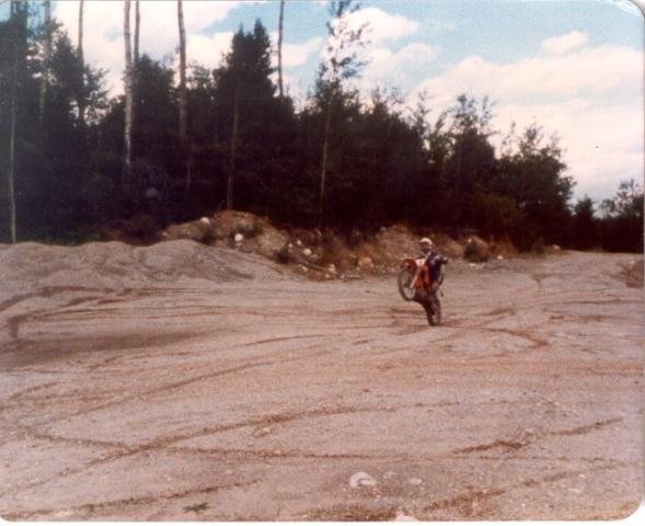 These pictures were taken at a gravel pit behind Marion Lake. There was a big pile of crushed stone and at the top there was ledge where I could launch myslef and I would fly back down the hill. Pictures were taken with a Kodak Disc camera. Remember those? Good for capturing action shots but the film was so small the resulting pictures were pretty low resolution.