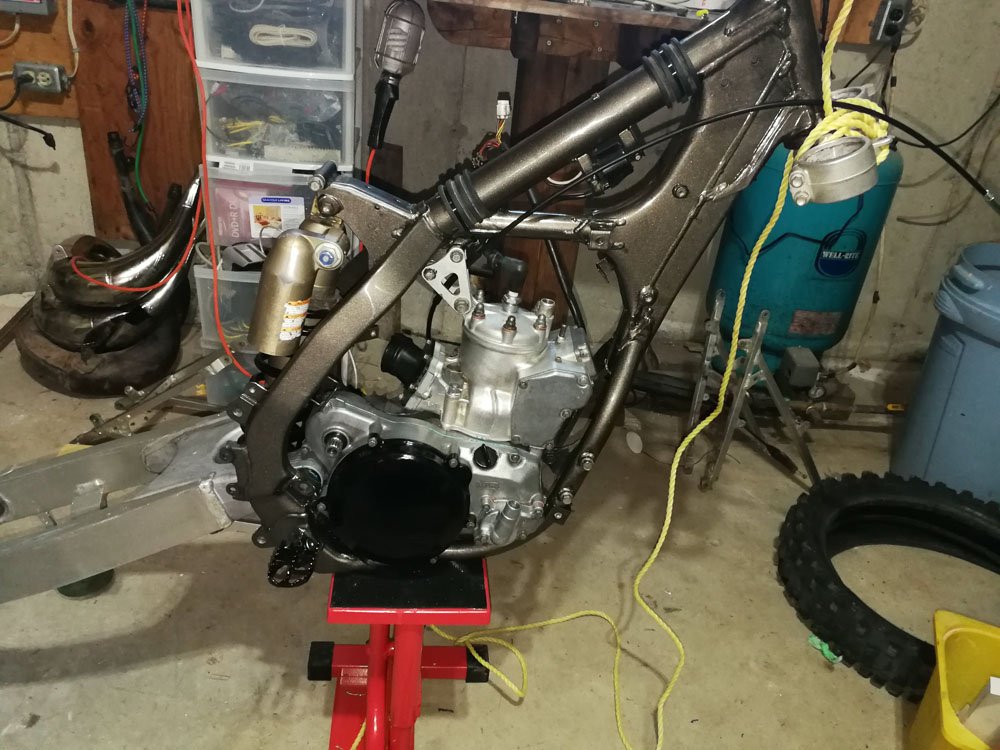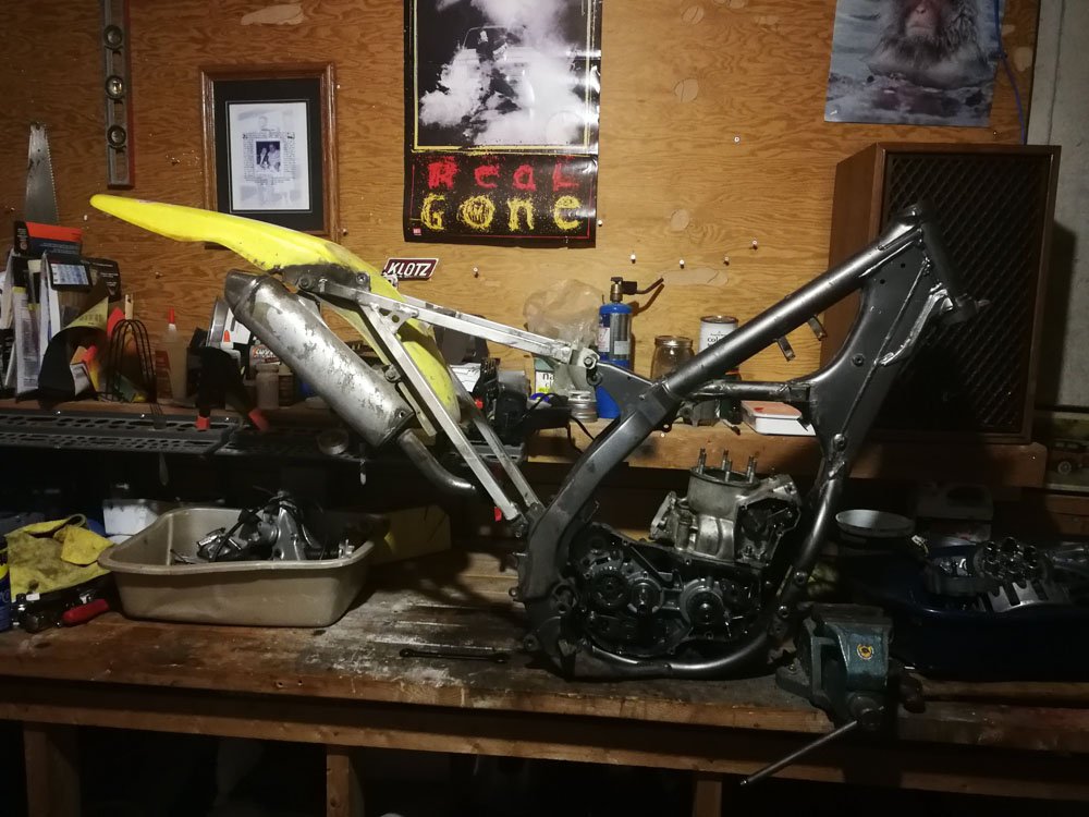 Once the bike was disassembled, I was able to see the full extent of what it needed. The obvious parts being the pipe, engine work and seat but there were so many little things that just add up to a job that I perhaps never should have started. Magneto cover, worn out brake pedal, broken spokes, brake rotors, forks, tires, ignition coil, foot peg pins, and the list goes on. But I wanted a winter project, so I marched on.