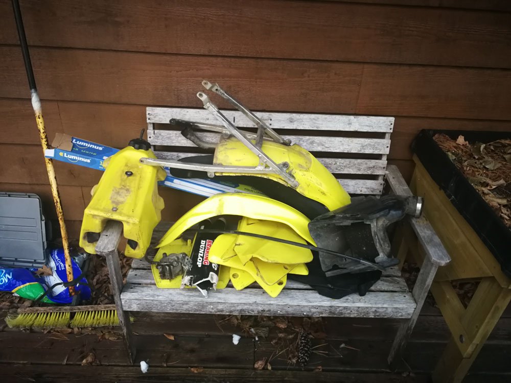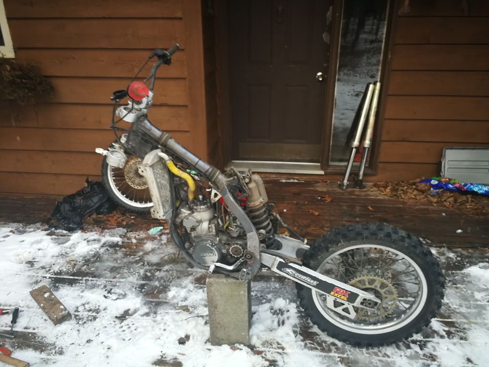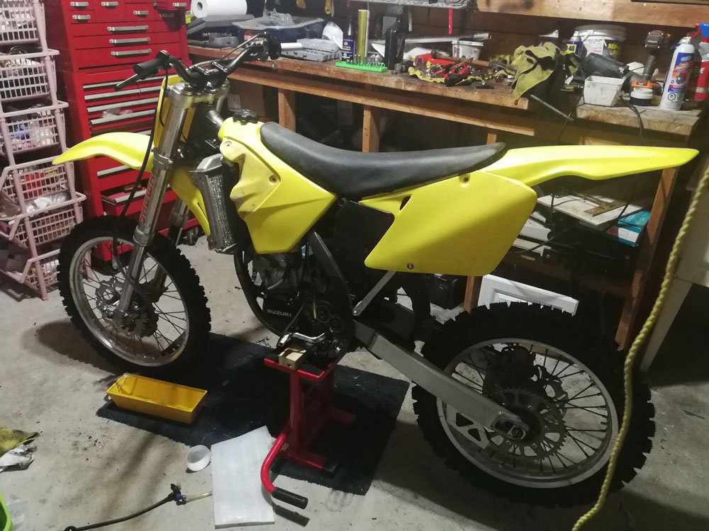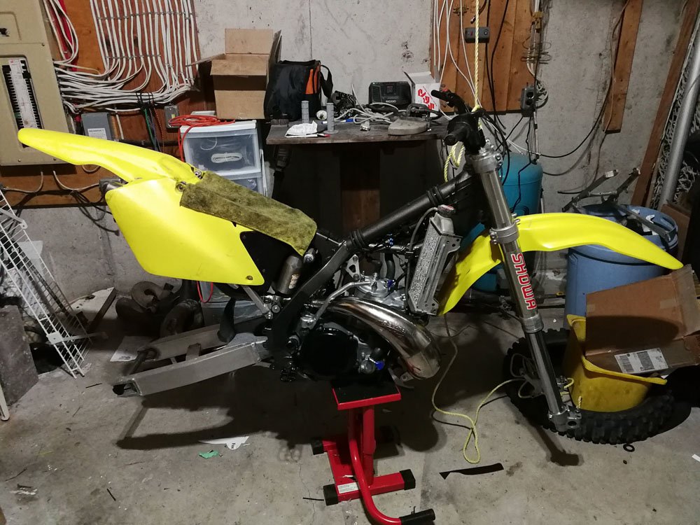I found this 2001 Suzuki RM250 on Kijiji. The guy was asking $1300 and the ad said it needed a clutch and a pipe. The title said "Need Gone!" I offered $600 based on the age of the bike and the fact that just to get it running it would need a clutch, a pipe and a seat assuming everything else was fine. The guy didn't like the offer but after a month of trying to sell, he accepted my offer. $600 initially sounds like a good price, the bike looks fine at a gllance but it is a beater that has seen years of abuse. My fear is that if I spend $1,000 in parts, the bike will only be worth $1,500.
