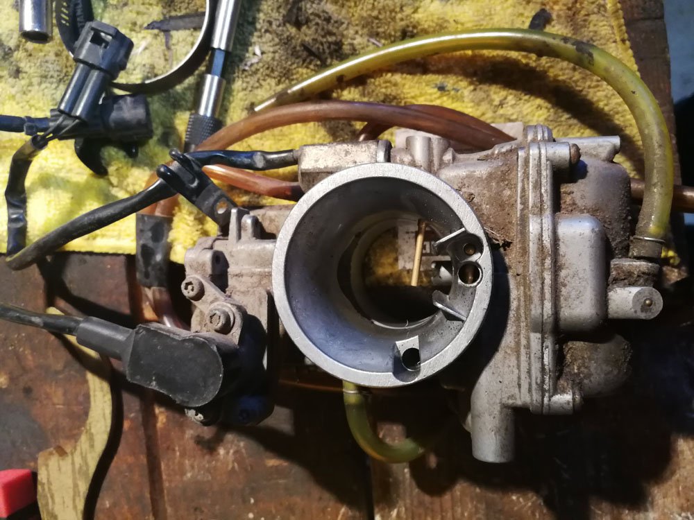 Carburetor (reference shot) was thouroughly cleaned and I checked the jetting specs. Jetting is correct according the FMF recommendations.