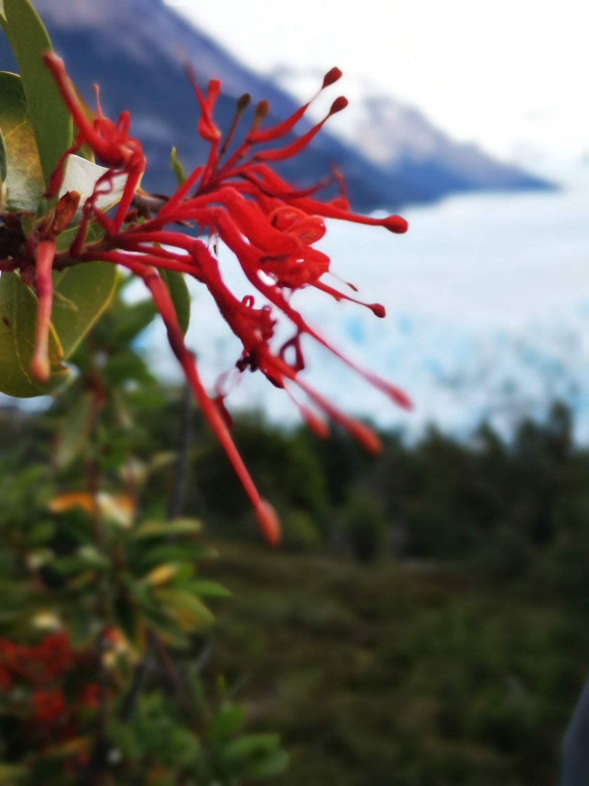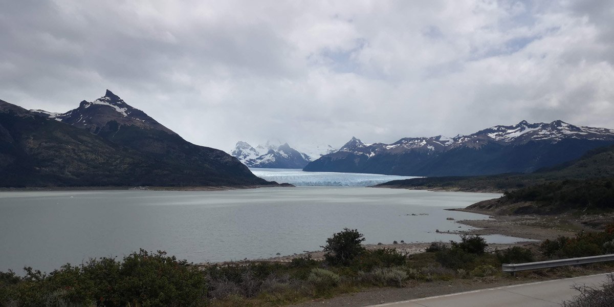 The flat road through the barren Patagonia tundra turned into a beautiful mountain road that wound its way along the shoreline at the mountain's edge. The climate too changed and where just a few minutes before there was hardly anything growing, now there was a lush forest that we were riding in, there was even a little bit of humidity. The road was smooth and twisty, a dream-come-true for motorcycle riders. Chuck took up the position of riding on Roberto's tail and the rest of us followed close behind enjoying the road and new vistas. I knew that eventually we would come around a turn with a view of the lake and see a glacier. What I was not prepared for was just how amazing that view would be.