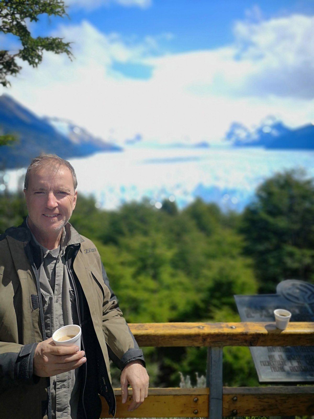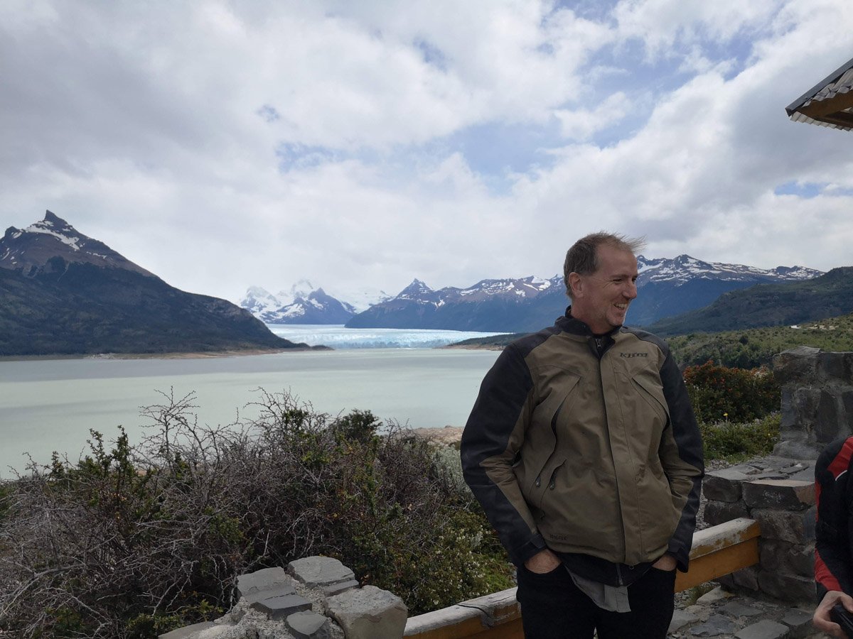 Our final day on motorcycles. We rode from El Calafate to Los Glaciares National Park and gave the motorcycles away at a ceremony beside the Perito Moreno glacier. The day started with nobody in a hurry, except for Jeff, our mechanic. Jeff had 13 motorcycles that had taken 10 days of hard riding and had to return them to showroom shape in just a few hours. A bunch of us pitched in and helped where we could. We drove the bikes up to the carwash five-at-a-time and got all the Patagonia dirt off of them with a time to spare.