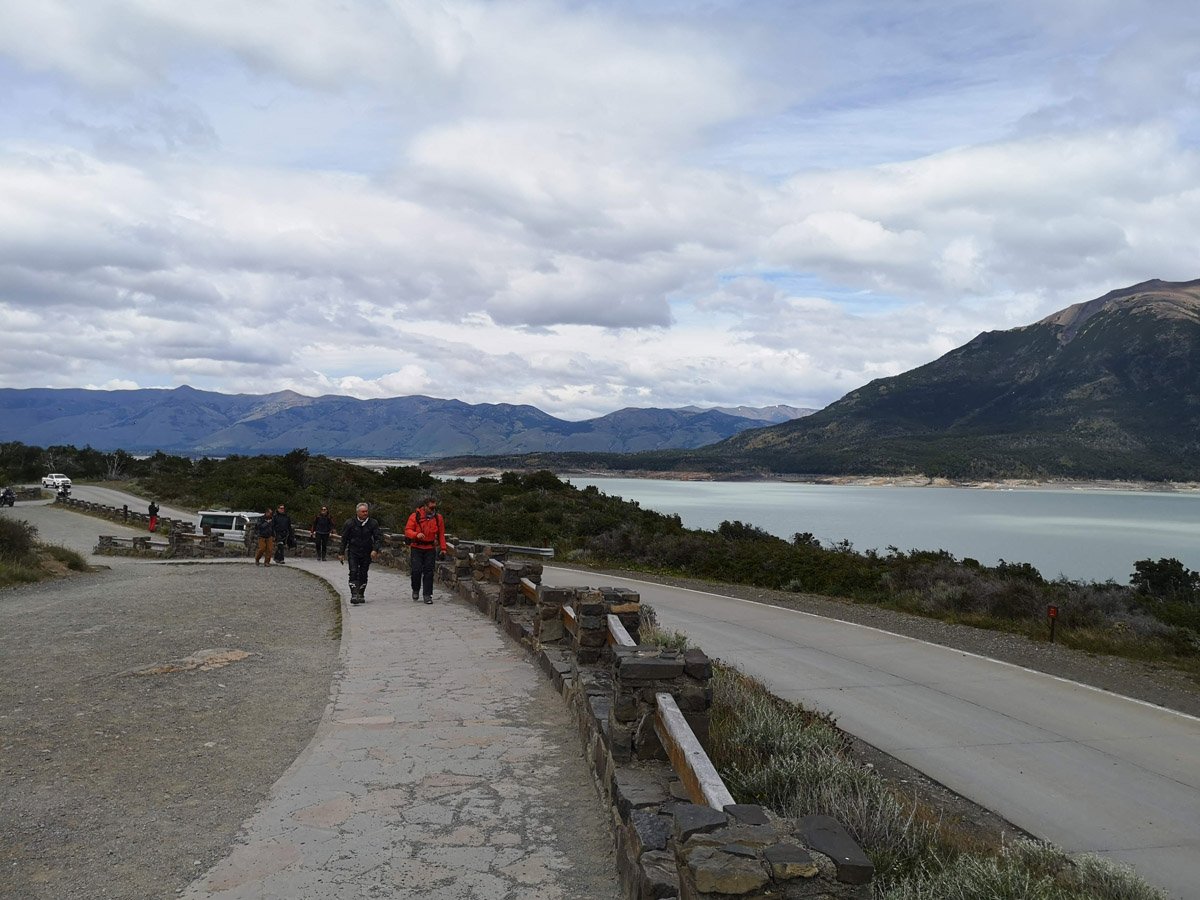 Next was to deliver these bikes to the rangers at Los Glaciares National Park. As we were fired up and ready to go, Steven asked me if I had my ukulele with me and I said "no". He encouraged me to grab it so I dashed back up to my room grabbed it and tossed it in the support truck and we headed to the park. The ride to the park was to be about an hour and we were told that it was going to be a really nice ride. It started off rather plain - if anything in Patagonia can be called plain- but it sure did change into spectacular in a hurry. Before heading to Patagonia, I had looked on Google Earth at all the places we would be going so I knew we were going to see a glacier at the head of a large lake. We were also told by Roberto, that this is probably the most beautiful scenery so far in the entire trip. But that did not prepare me for what a sight the Perito Moreno Glacier would be.