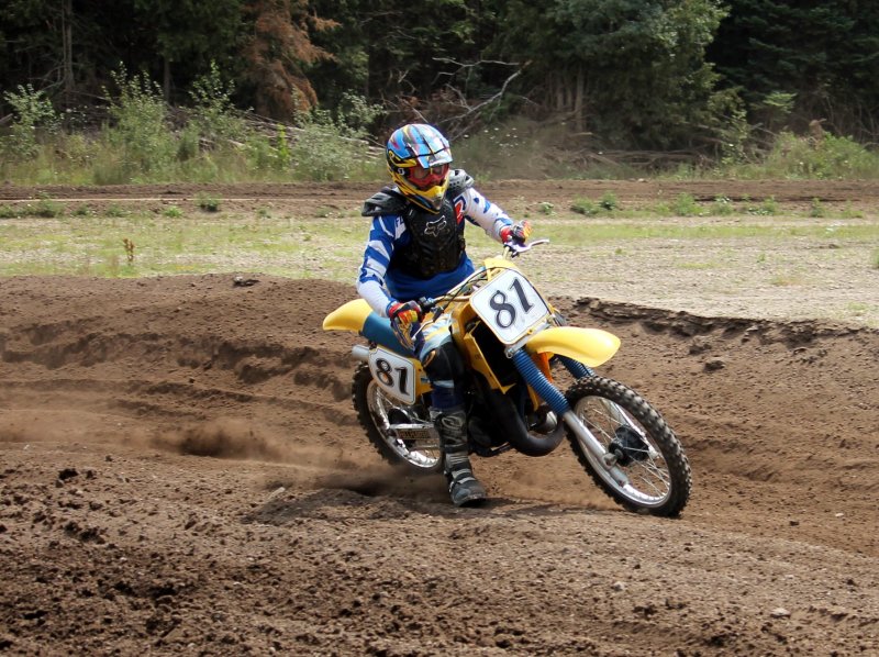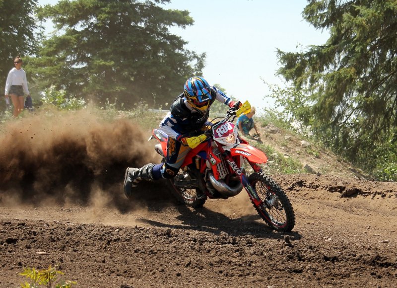 Practice at Burnt River is a fairly casual affair- as soon as riders meeting is over, you just head out and do some laps. I went out first on my trail bike. My 2017 Beta 250RR is new to me. I have only ridden it a few times and this would be the very first time spinning laps on a motocross track. This bike is a beast with a great engine, a six-speed transmission, headlight, tail-light and a license plate. Don't let the plate fool you, this is a full-fledged, light-weight race bike with a hydralic clutch, pinky-finger brakes, electric start, and top-shelf components. It is a trail bike though so the suspension is soft.